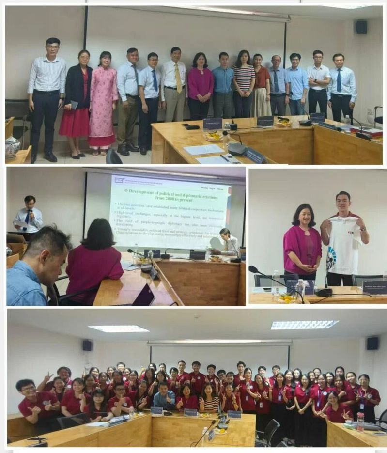 研讨会上,张艳秋副院长首先介绍中国传媒大学及人类命运共同体研究院的发展概况,随后发表题为 “以人文交流筑牢中越关系之基” 的主旨发言,围绕中越命运共同体建设路径、深化双方面对面人文交流的具体方向展开深入阐述;张志华教授介绍新闻学院学科特色,并以“全球南方视角下的中越南南传播”为主题,分享对中越开展南南传播的思考与见解。胡志明师范大学阮忠水博士则系统梳理近15年来中越两国在政治、经济领域的互动历程与合作成果。专家们的发言引发在场师生强烈共鸣,大家围绕议题积极提问、深入交流。