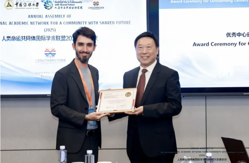 Por su parte, el profesor Jorge Dias, coordinador del Área de Estudios en Relaciones Internacionales del CVEC, participó en la Asamblea Anual de la Red Académica Internacional de la Comunidad de Futuro Compartido. Allí presentó los logros del período 2024-2025 y los planes para el próximo año. Su intervención fue reconocida con el premio al “Centro de Investigación Destacado”, otorgado por el decano Li Huailiang al Centro de Investigación “China-Venezuela”, reafirmando el compromiso del CVEC con la cooperación internacional y el pensamiento estratégico.